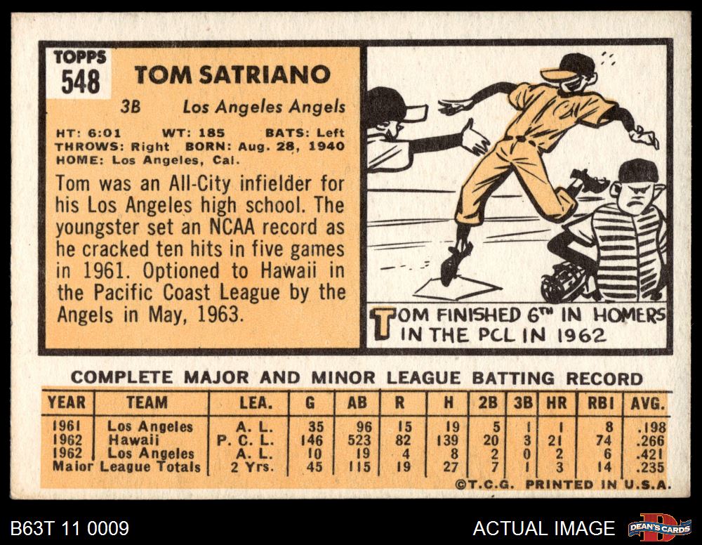 1963 Topps #548 Tom Satriano 6.5 - EX/MT+