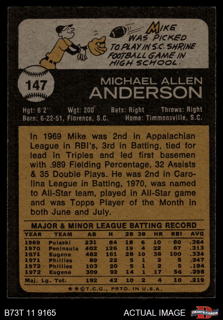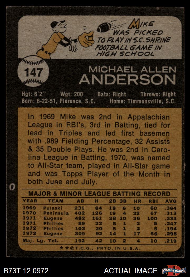 1973 Topps #147 Mike Anderson 6 - EX/MT