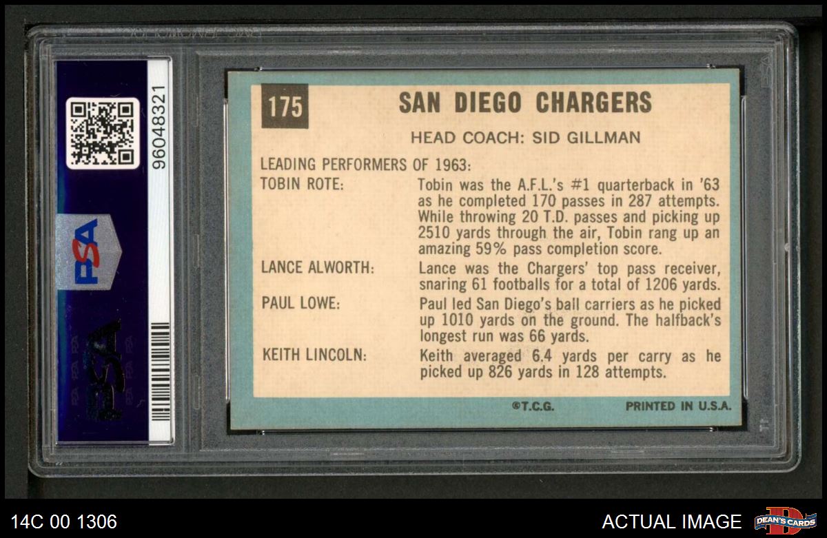 1964 Topps #175 San Diego Chargers Team PSA 7 - NM