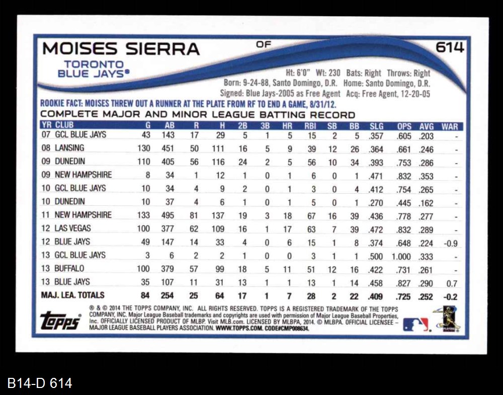 2014 Topps #614 Moises Sierra 8 - NM/MT