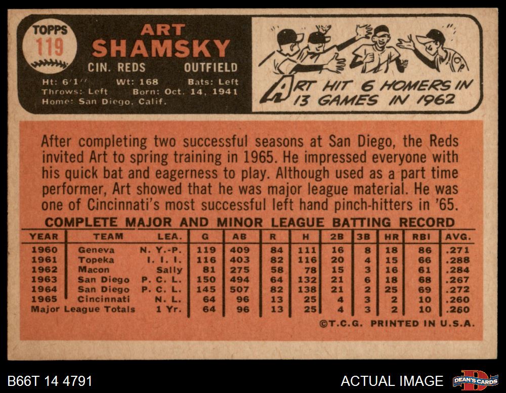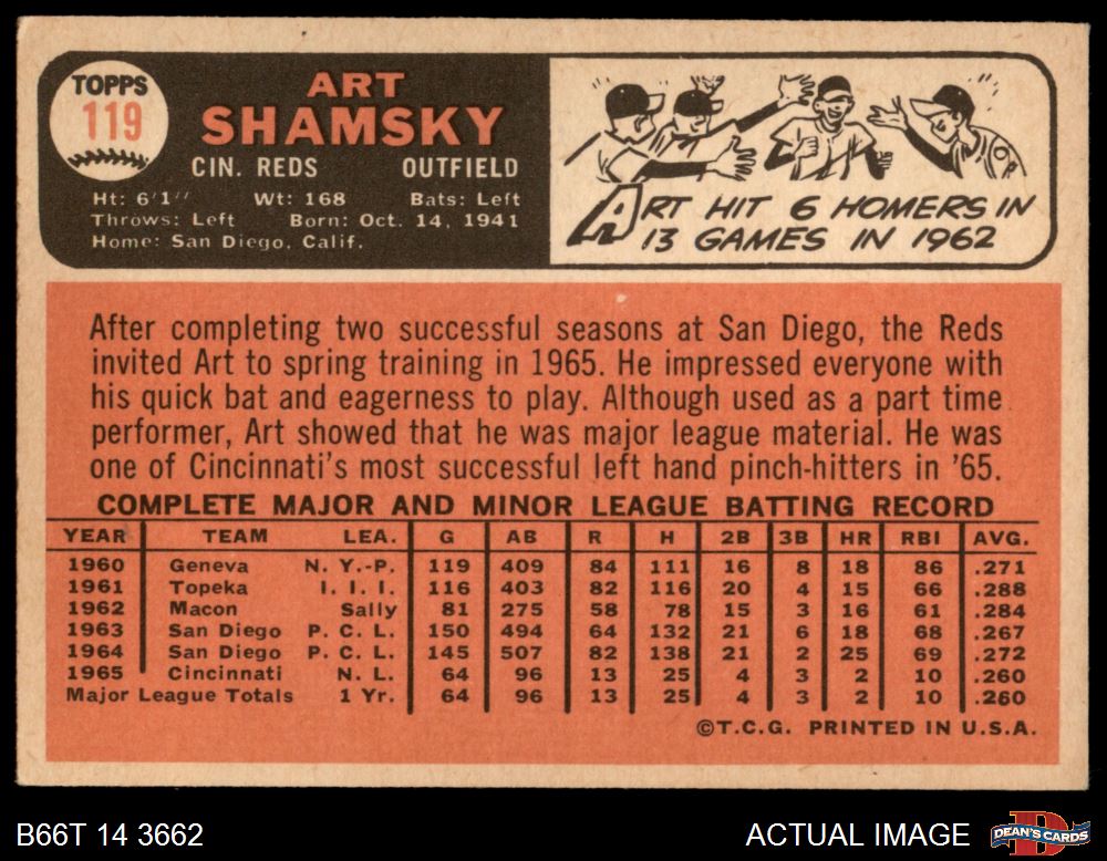 1966 Topps #119 Art Shamsky 4 - VG/EX