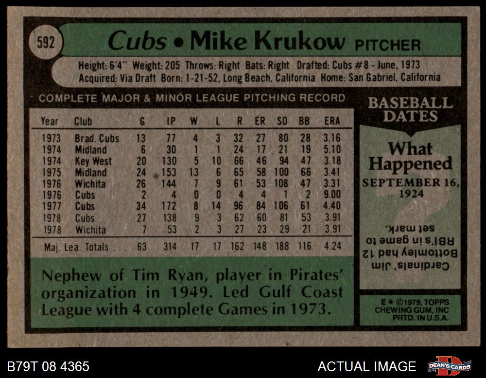 1979 Topps #592 Mike Krukow 3 - VG