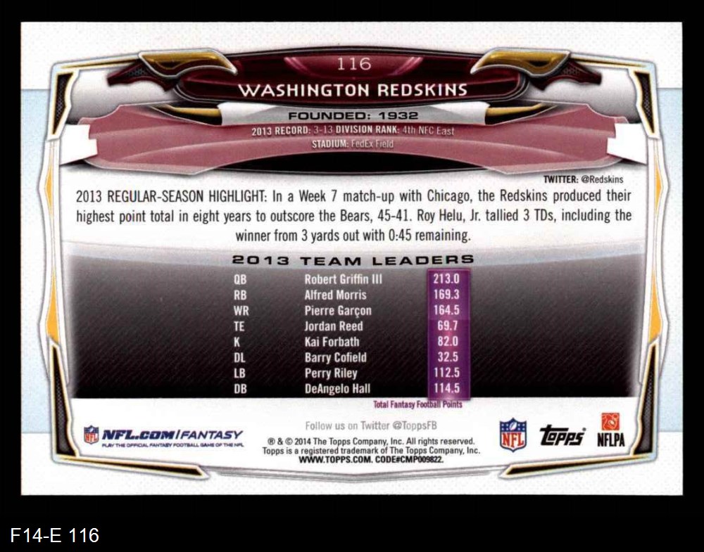 2014 Topps #116 Washington Redskins Team 8 - NM/MT