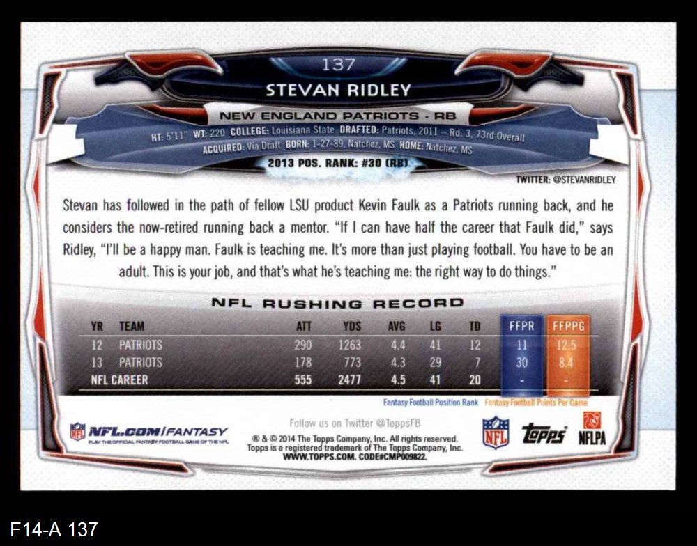 2014 Topps #137 Stevan Ridley 8 - NM/MT