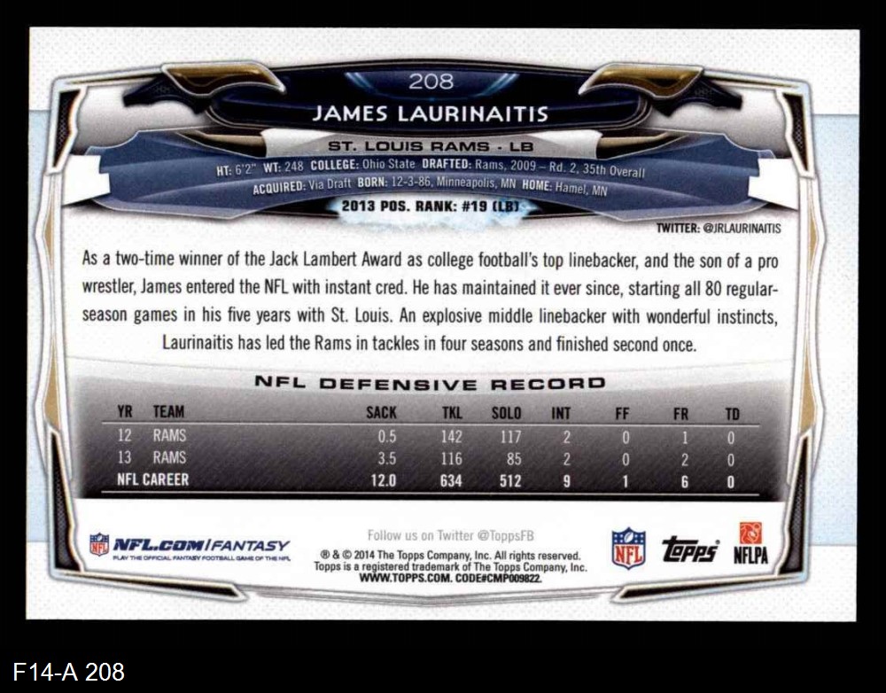 2014 Topps #208 James Laurinaitis
