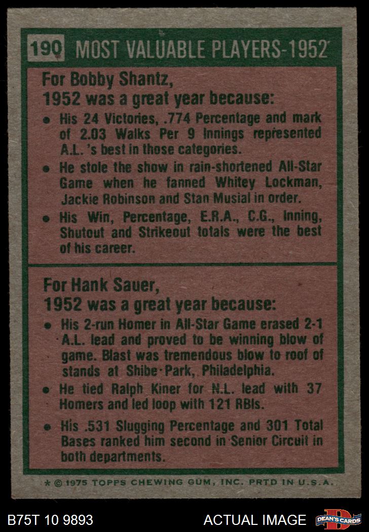 1975 Topps #190 1952 MVPs