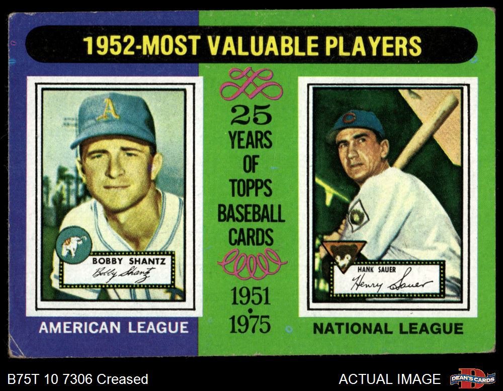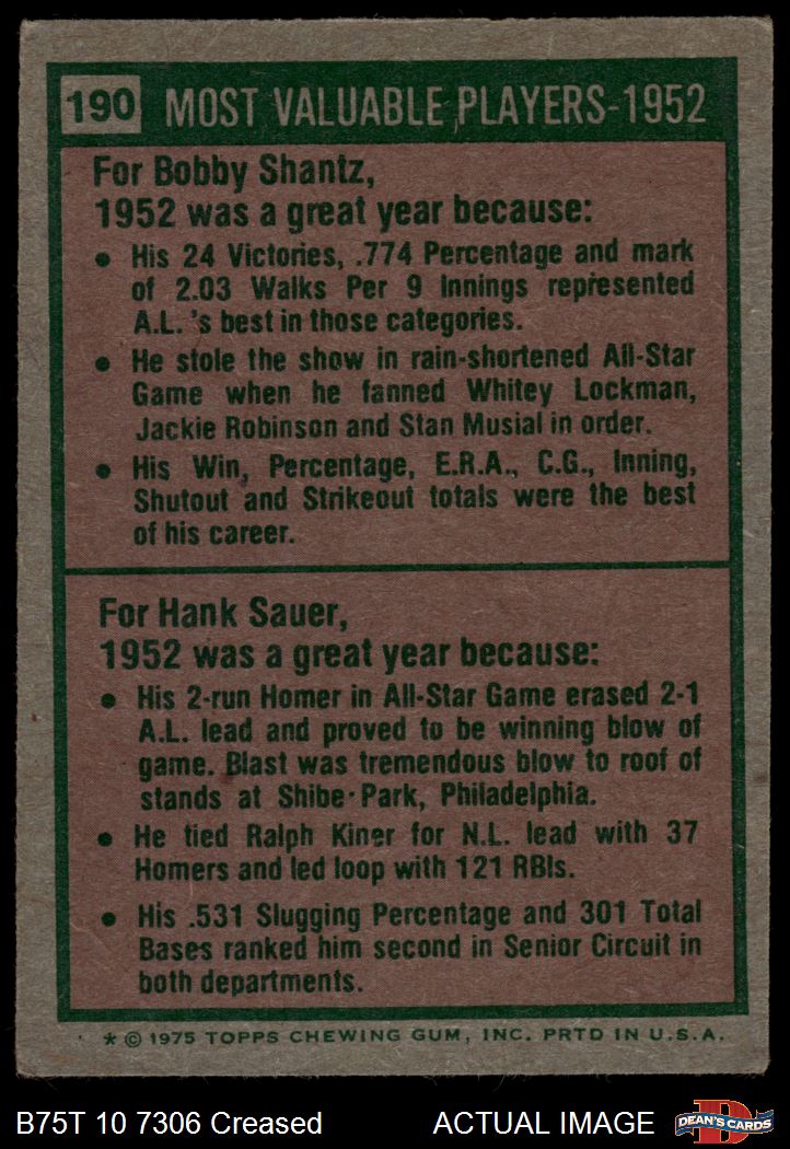 1975 Topps #190 - Bobby Shantz / Hank Sauer 1952 MVPs 3 - VG