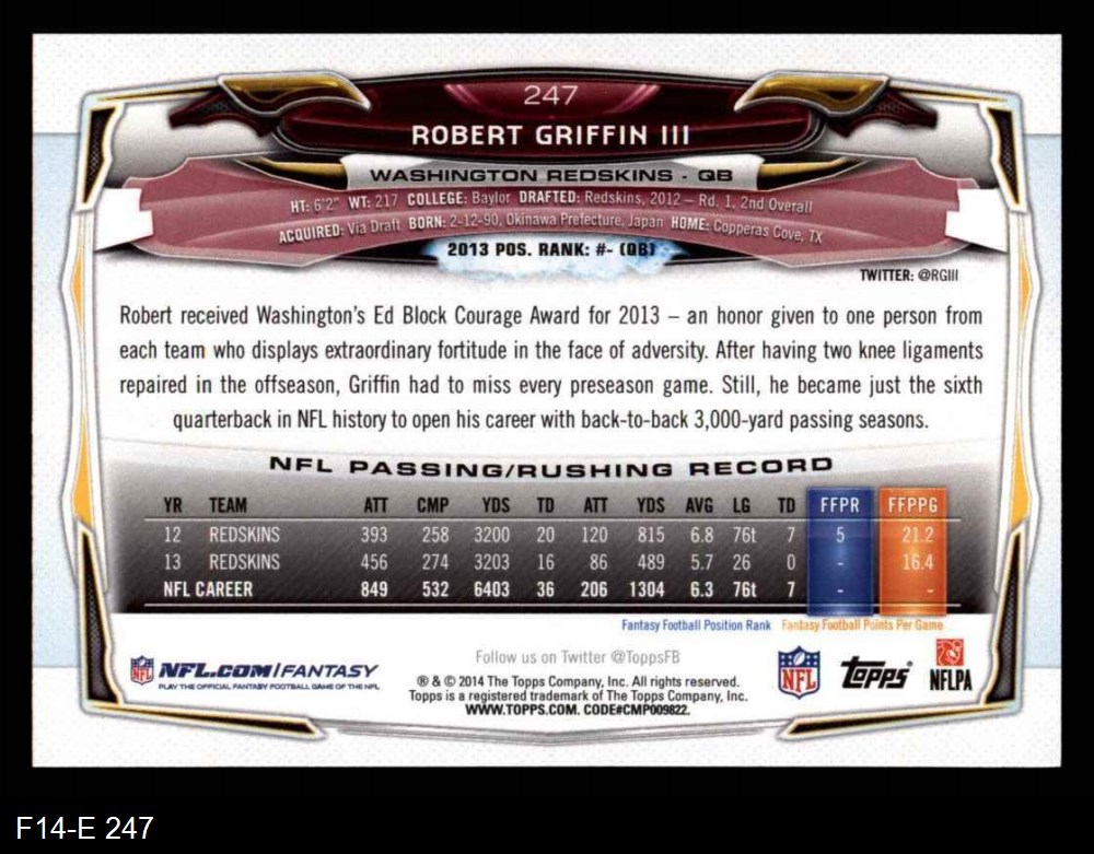 2014 Topps #247 Robert Griffin III 8 - NM/MT