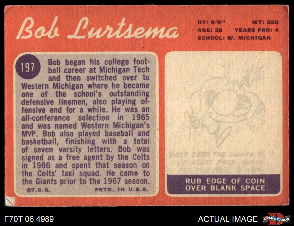 1970 Topps #197 Bob Lurtsema 3.5 - VG+