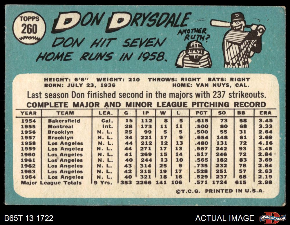1965 Topps #260 Don Drysdale