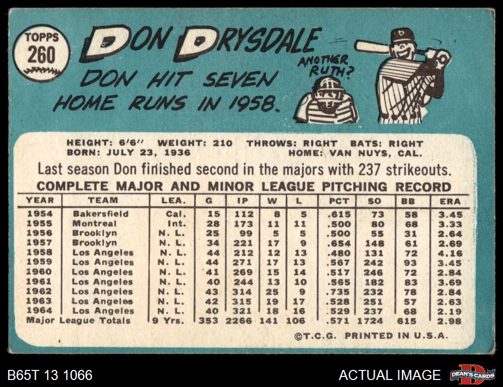 1965 Topps #260 Don Drysdale 2 - GOOD