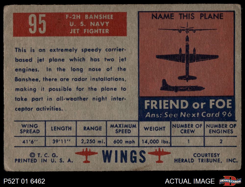 1952 Topps Wings #95 F2H Banshee