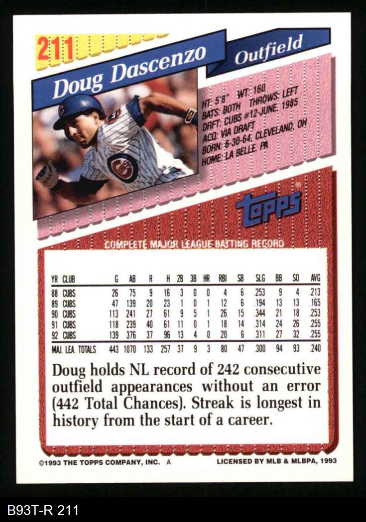 1993 Topps #211 Doug Dascenzo 8 - NM/MT