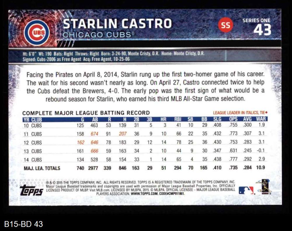 2015 Topps #43 Starlin Castro 8 - NM/MT