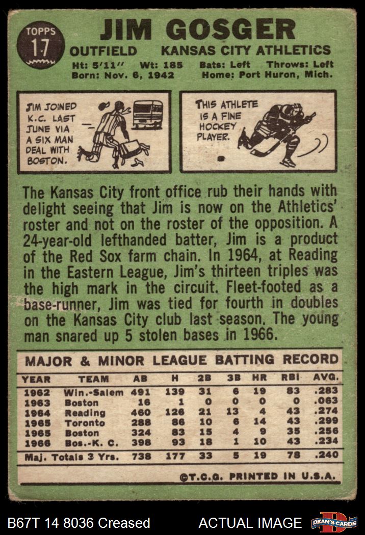 1967 Topps #17 Jim Gosger