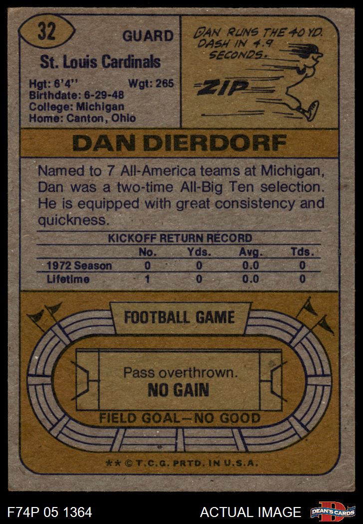 1974 Topps Parker Brothers #32 TWO Dan Dierdorf 4 - VG/EX