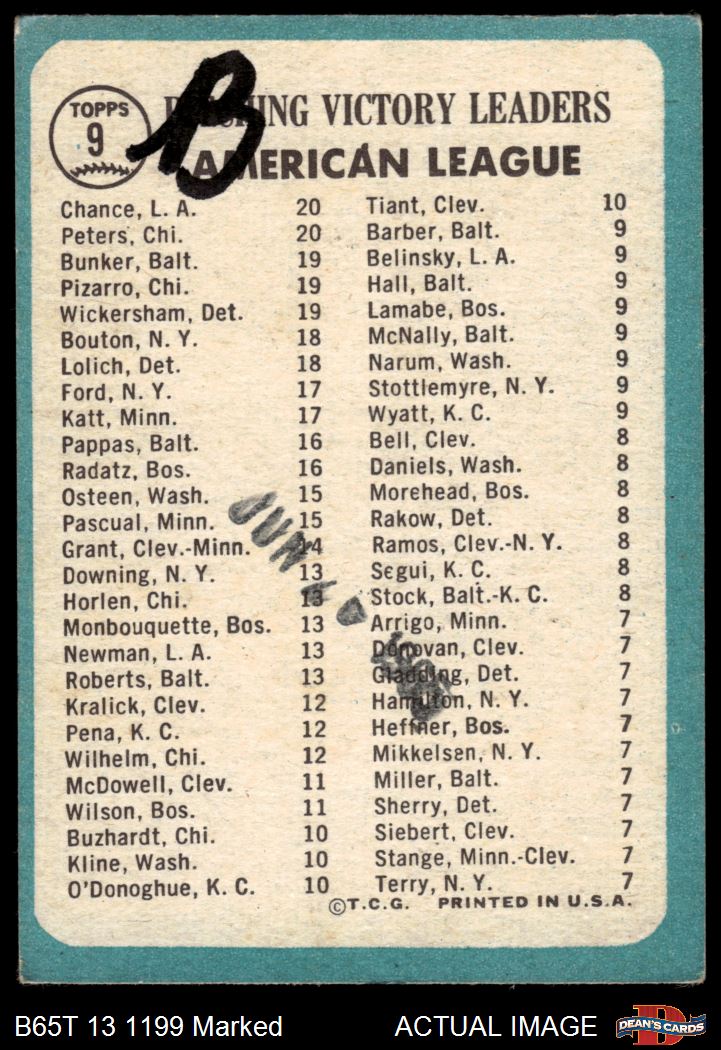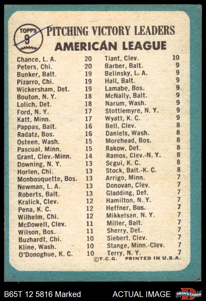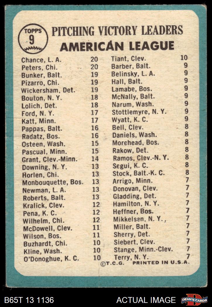 1965 Topps #9 - Wally Bunker / Dean Chance / Gary Peters / Juan Pizarro / Dave Wickersham AL Pitching Leaders 1.5 - FAIR