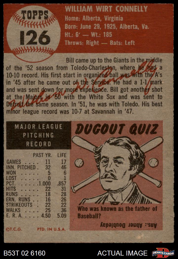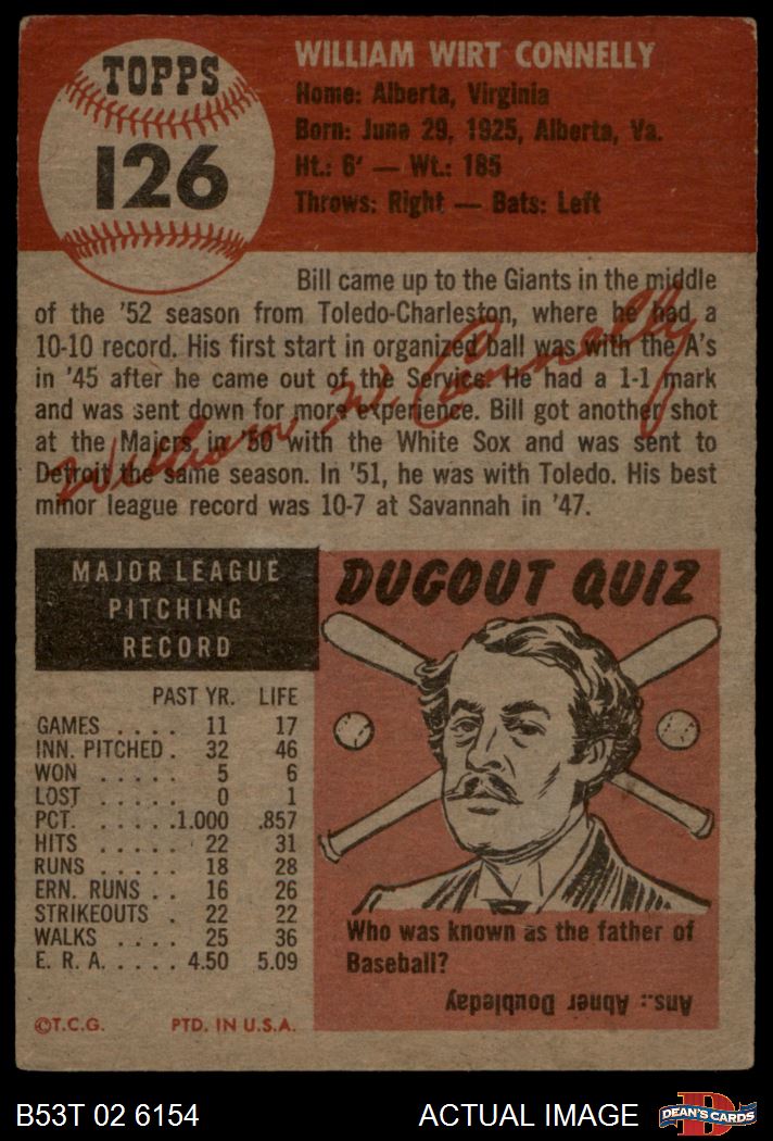 1953 Topps #126 Bill Connelly 4 - VG/EX