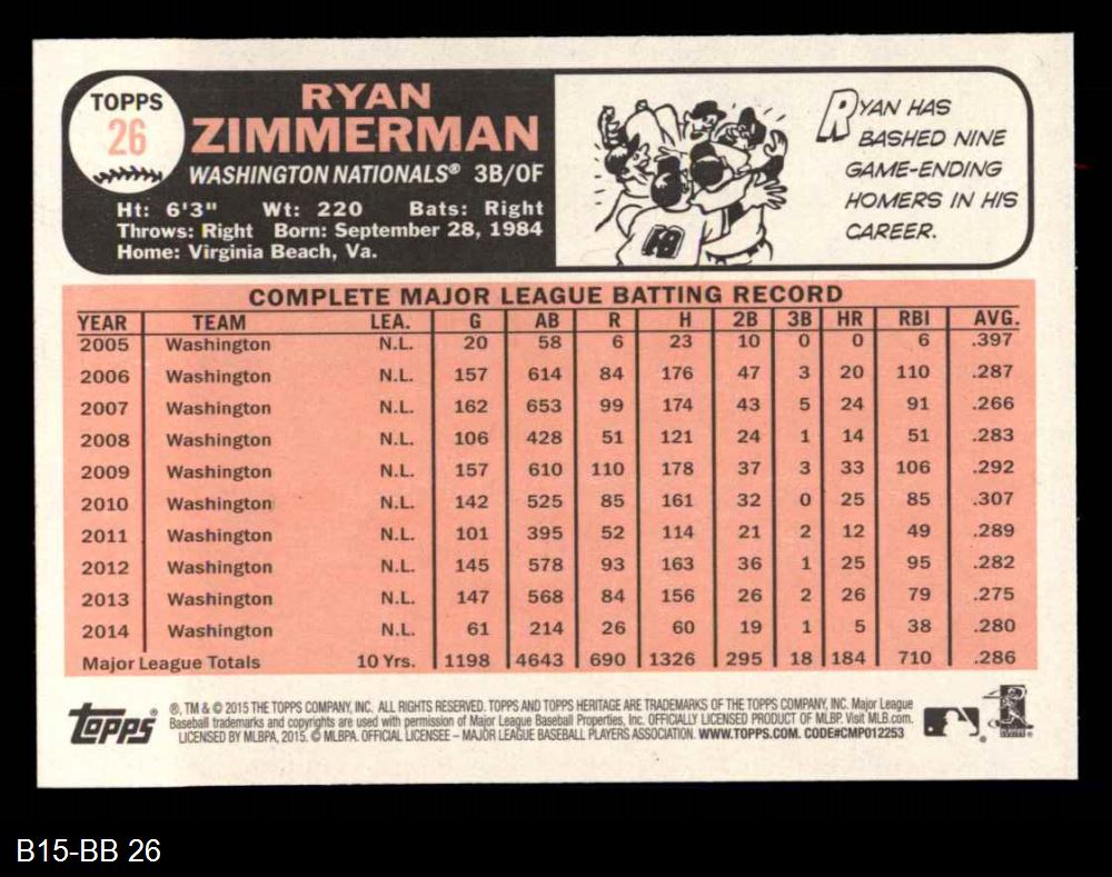 2015 Topps Heritage #26 Ryan Zimmerman 8 - NM/MT