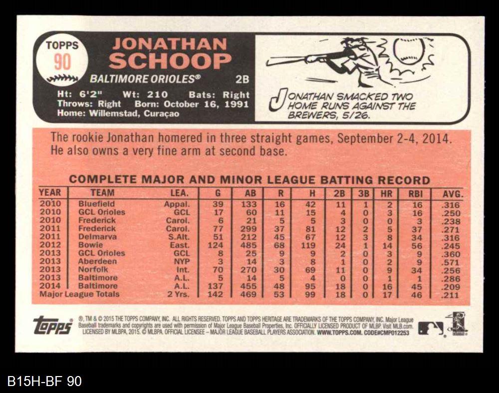 2015 Topps Heritage #90 A Jonathan Schoop 8 - NM/MT