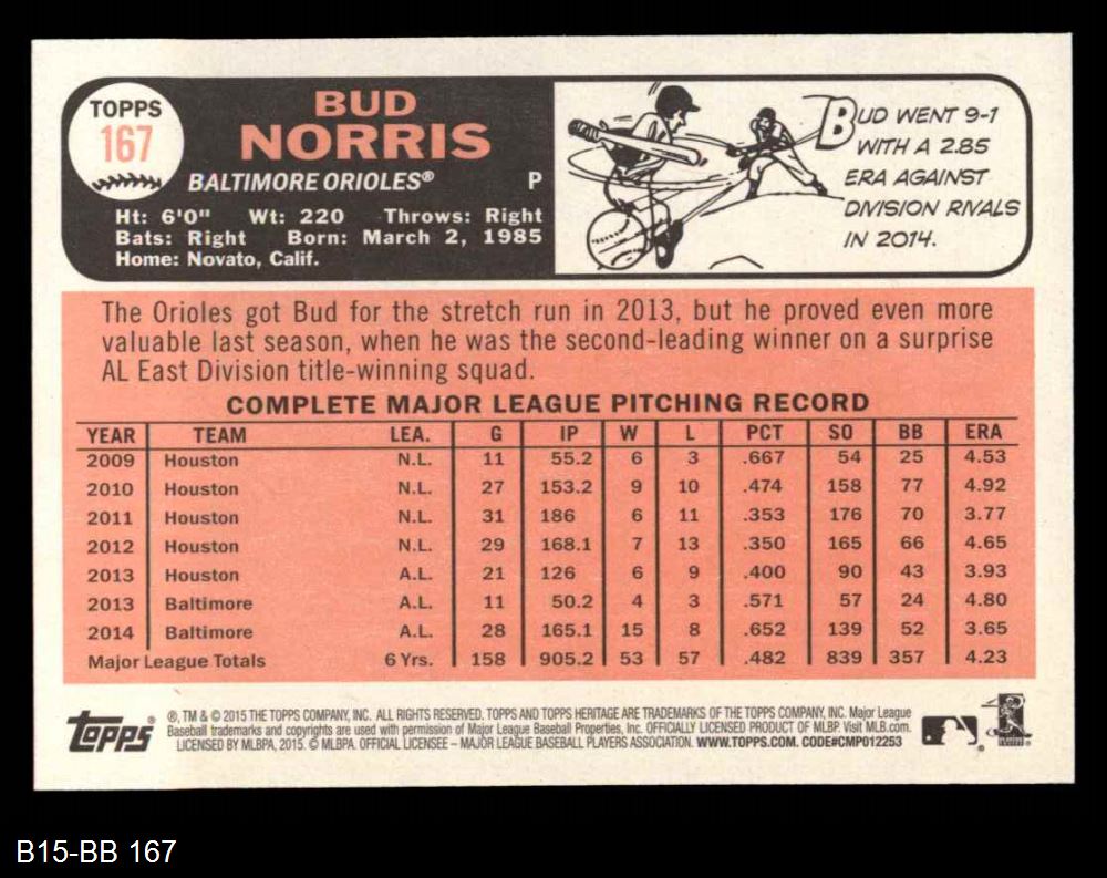 2015 Topps Heritage #167 Bud Norris 8 - NM/MT
