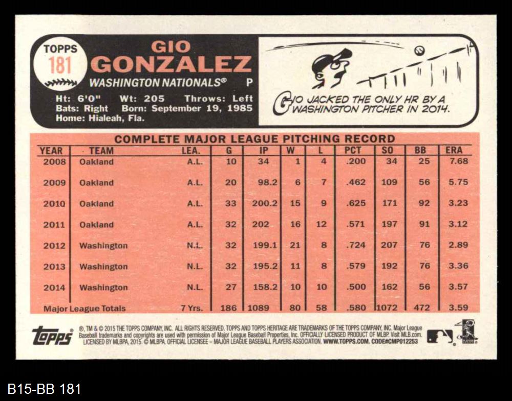 2015 Topps Heritage #181 Gio Gonzalez