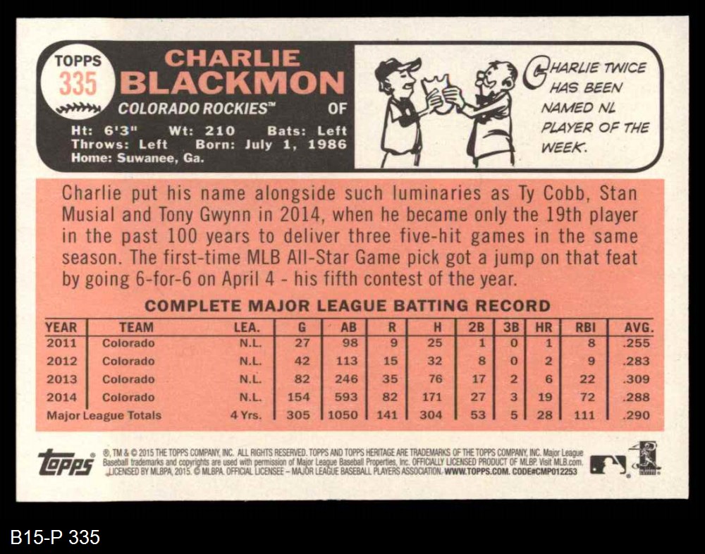 2015 Topps Heritage #335 Charlie Blackmon 8 - NM/MT