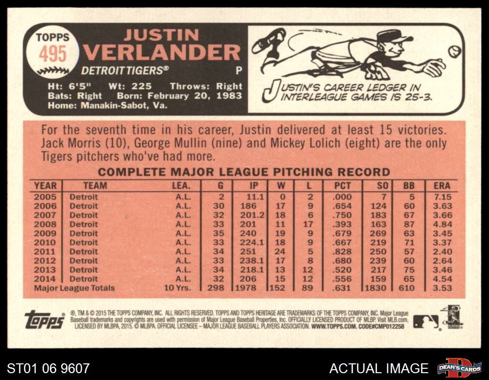 2015 Topps Heritage #495 Justin Verlander 8 - NM/MT