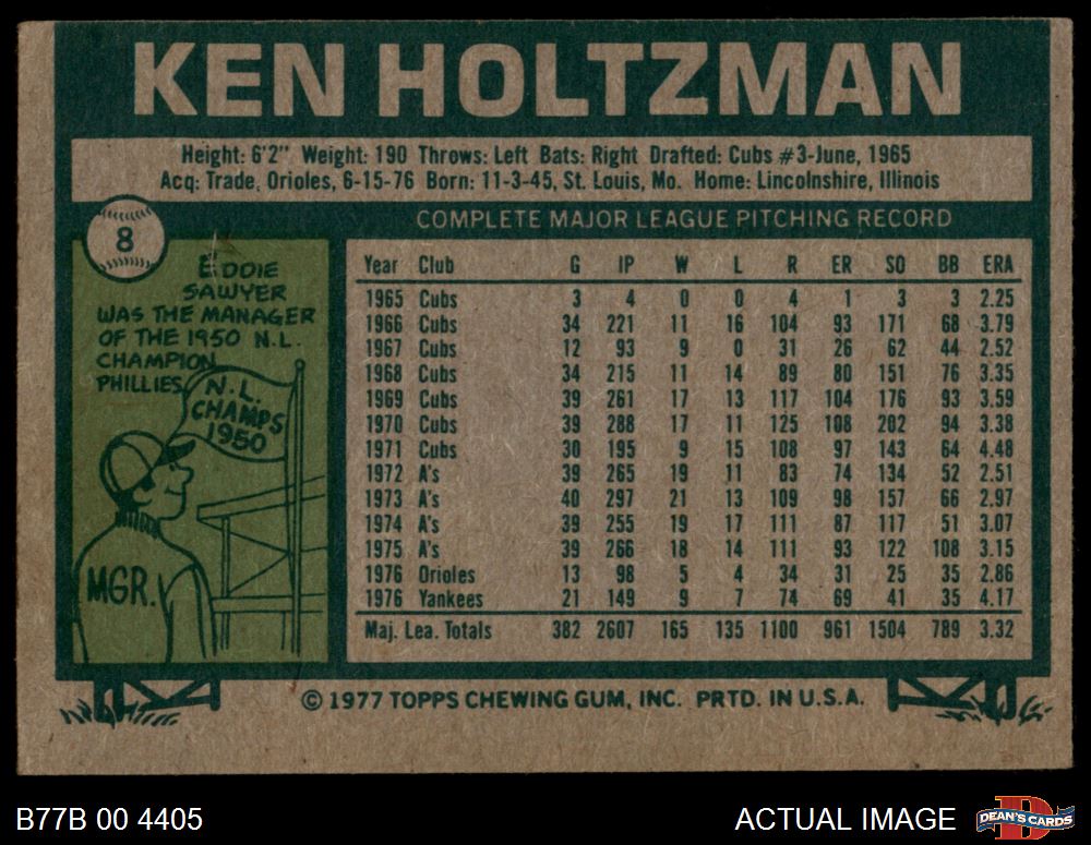 1977 Burger King #8 Ken Holtzman 3 - VG