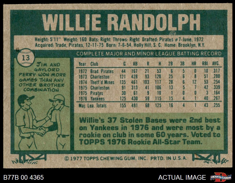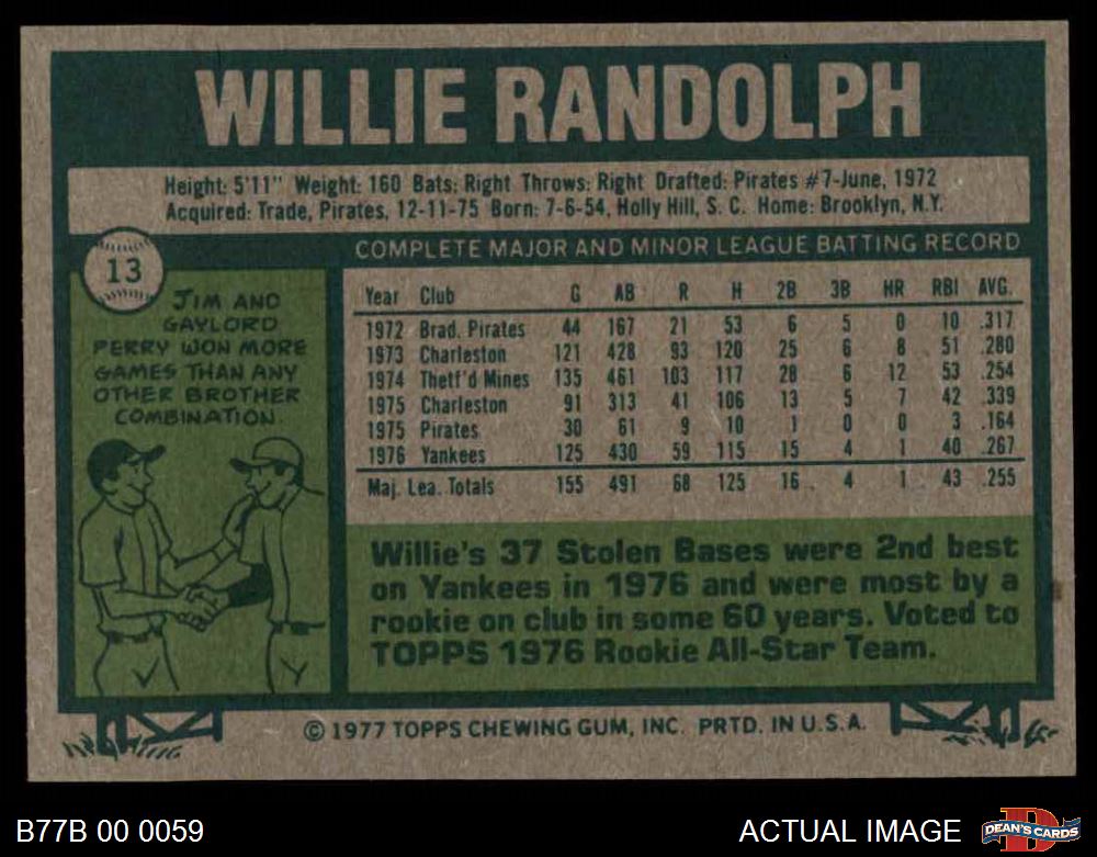 1977 Burger King #13 Willie Randolph
