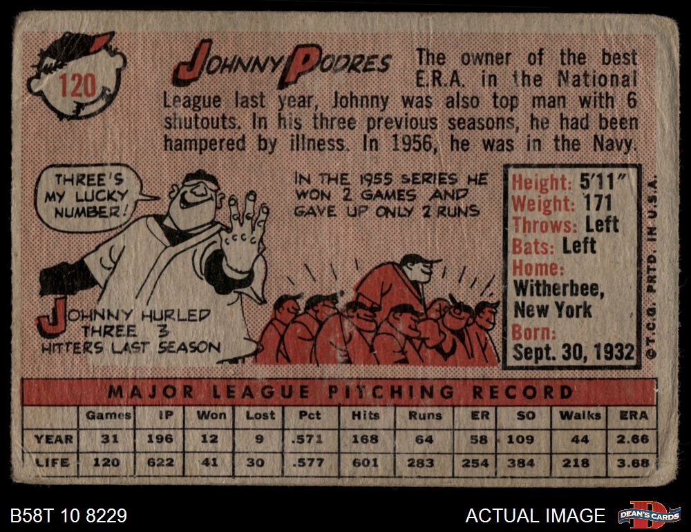 1958 Topps #120 Johnny Podres 1 - POOR