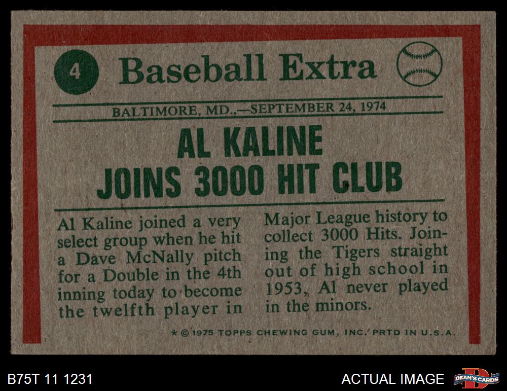 1975 Topps #4 - Al Kaline Joins 3000 Hit Club 3 - VG