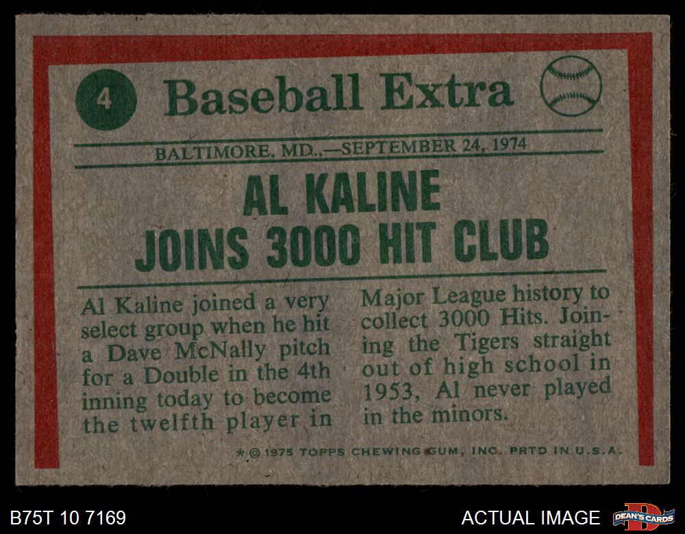 1975 Topps #4 - Al Kaline Joins 3000 Hit Club 6 - EX/MT