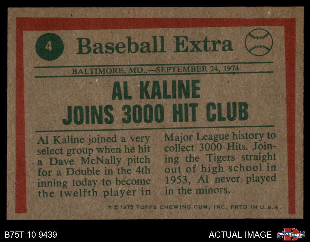 1975 Topps #4 - Al Kaline Joins 3000 Hit Club 7 - NM