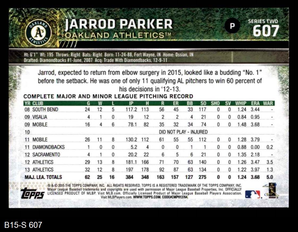 2015 Topps #607 Jarrod Parker