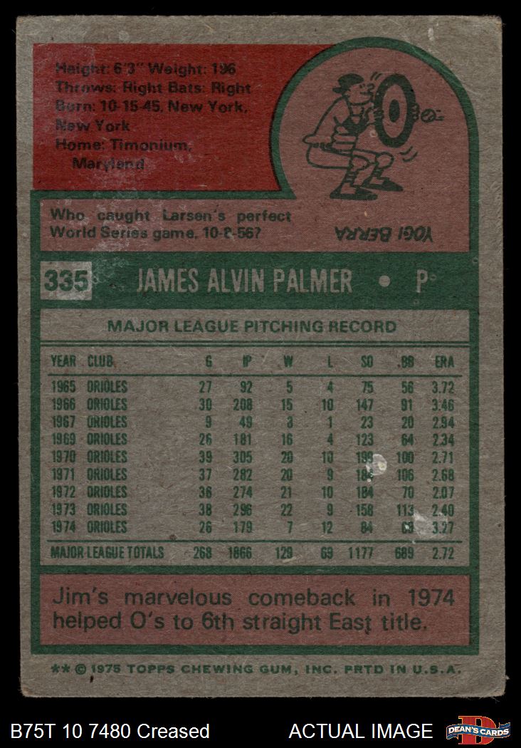 1975 Topps #335 Jim Palmer 1 - POOR