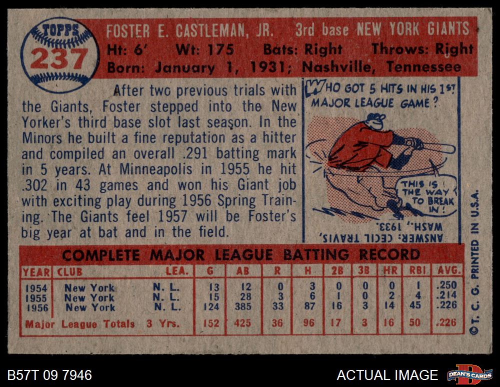 1957 Topps #237 Foster Castleman 6 - EX/MT