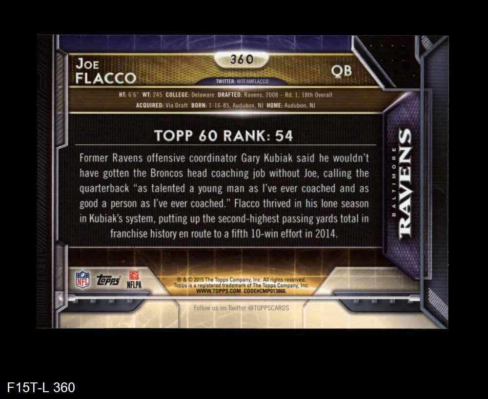 2015 Topps #360 - Joe Flacco Topp 60 8 - NM/MT
