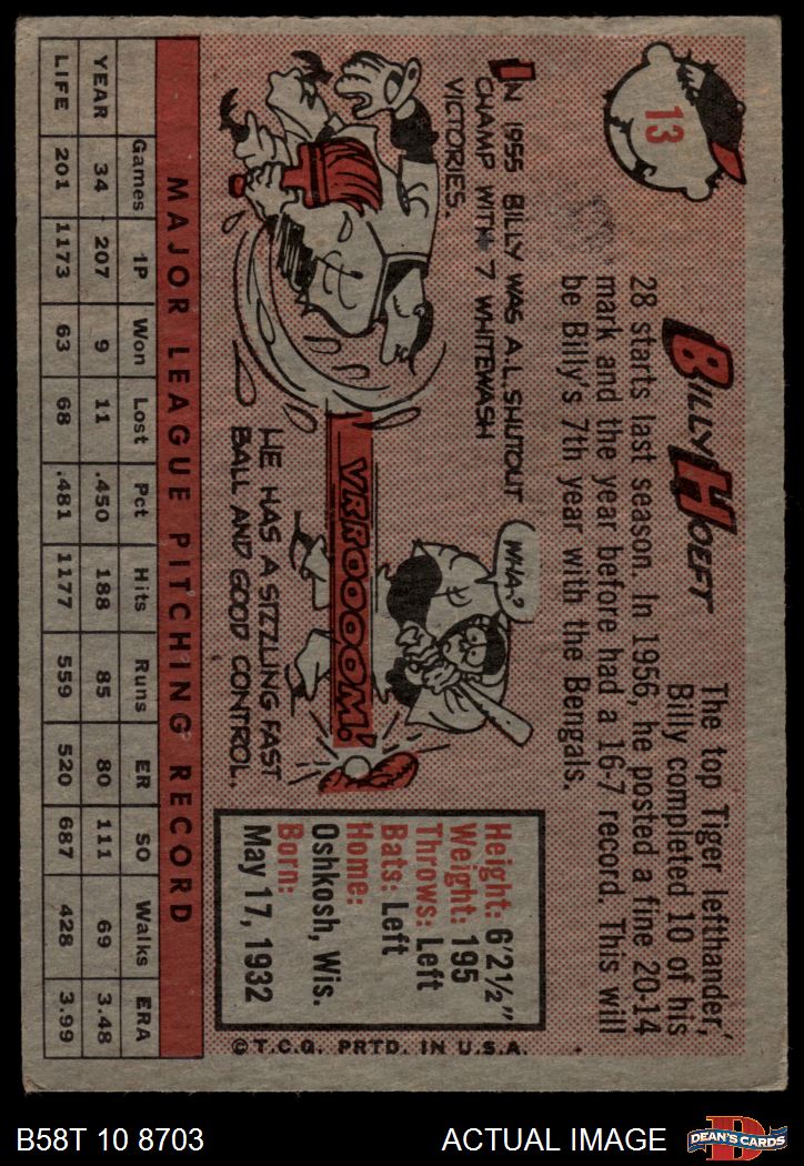 1958 Topps #13 RED Billy Hoeft 3.5 - VG+