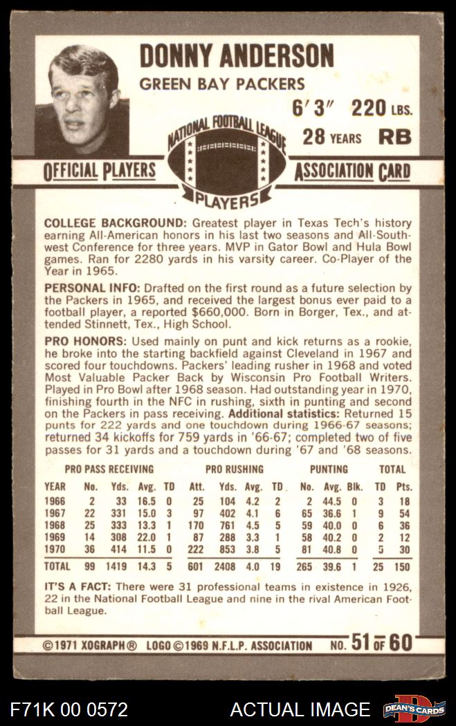 1971 Kellogg's #51 Donny Anderson 4 - VG/EX