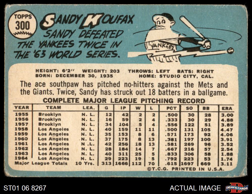 1965 Topps #300 Sandy Koufax 1 - POOR