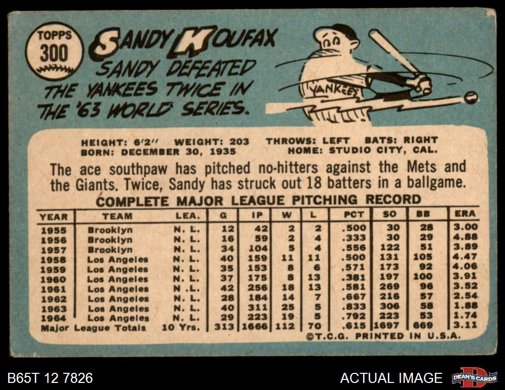 1965 Topps #300 Sandy Koufax 1.5 - FAIR
