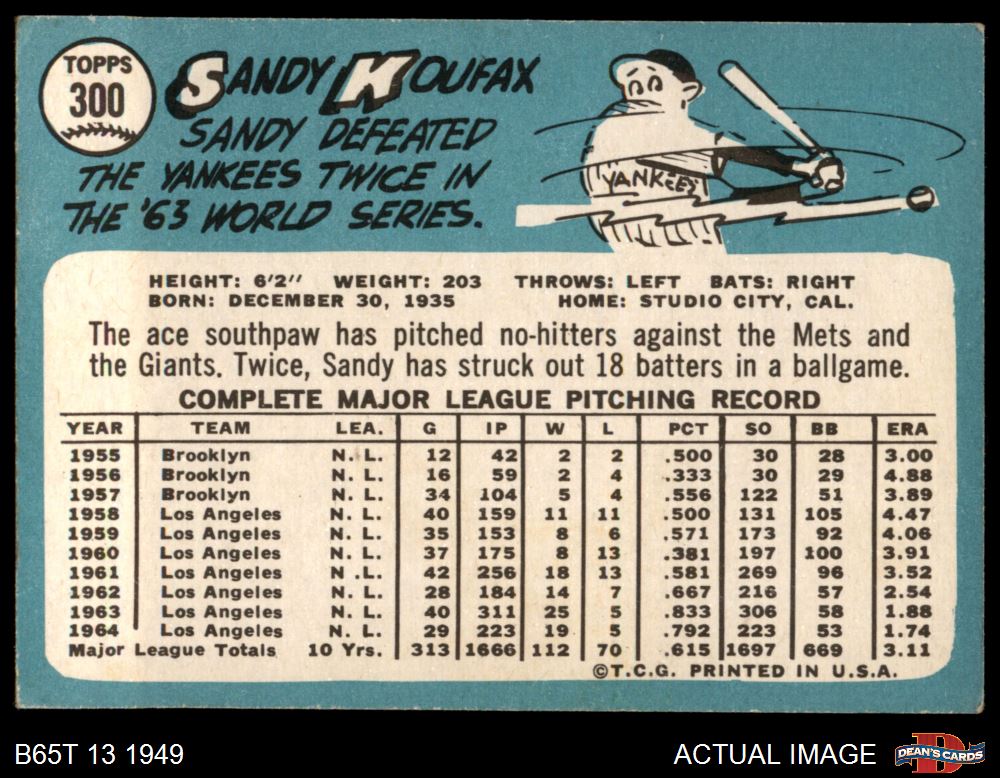 1965 Topps #300 Sandy Koufax 4 - VG/EX