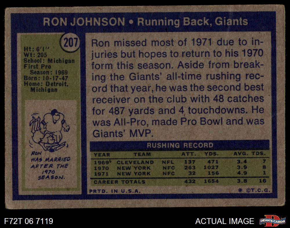 1972 Topps #207 Ron Johnson