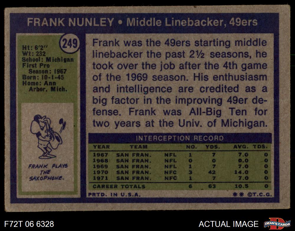 1972 Topps #249 Frank Nunley Front Thumbnail