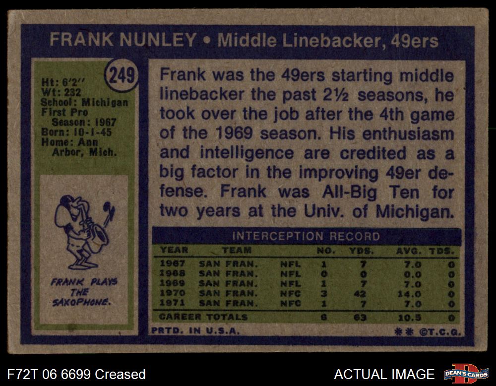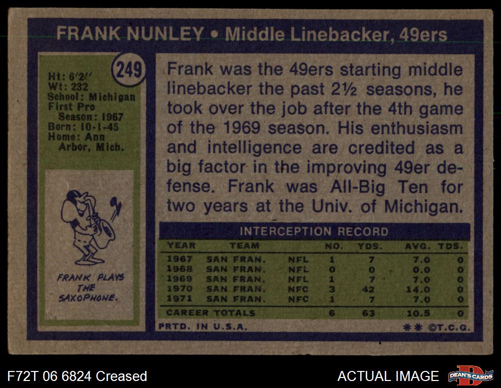 1972 Topps #249 Frank Nunley 2 - GOOD