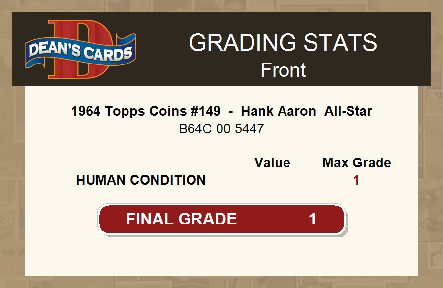 1964 Topps Coins #149 - Hank Aaron All-Star 1 - POOR