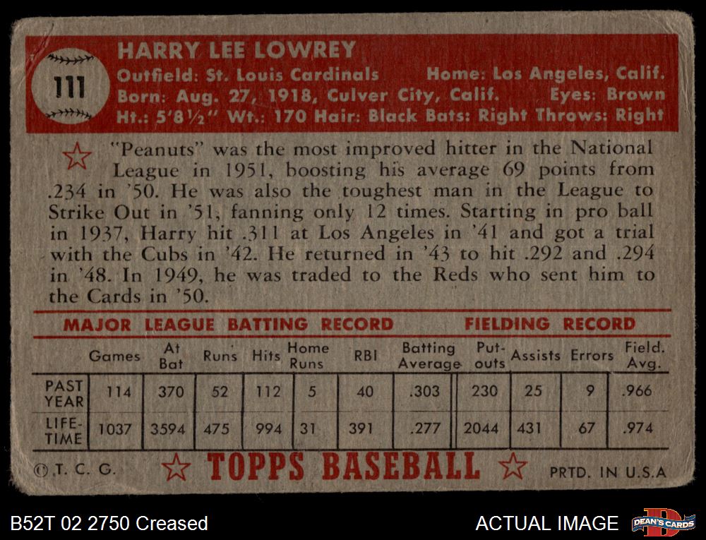 1952 Topps #111 Peanuts Lowrey Front Thumbnail