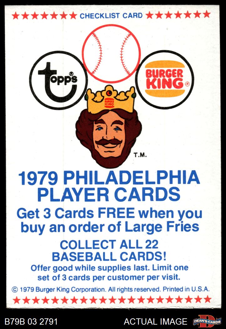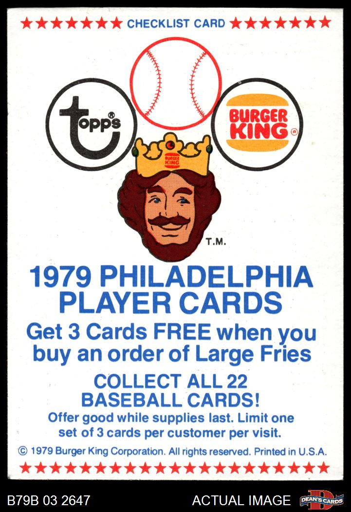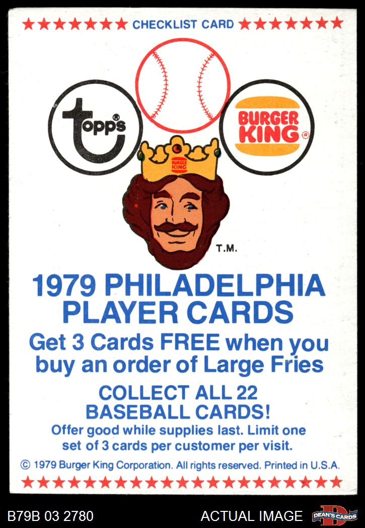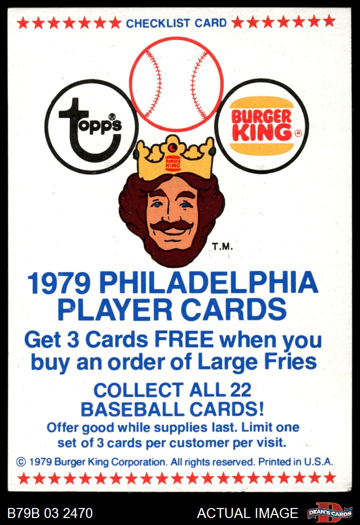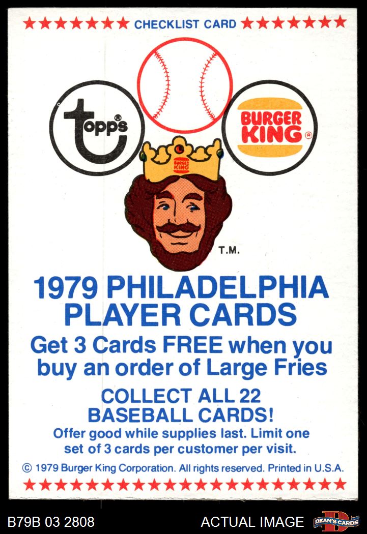 1979 Burger King Phillies Checklist 4.5 - VG/EX+