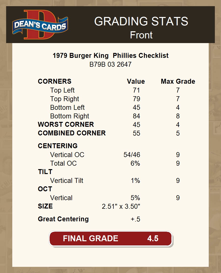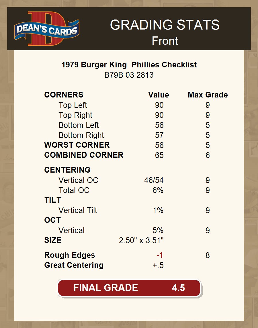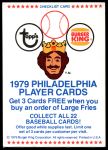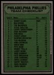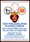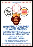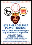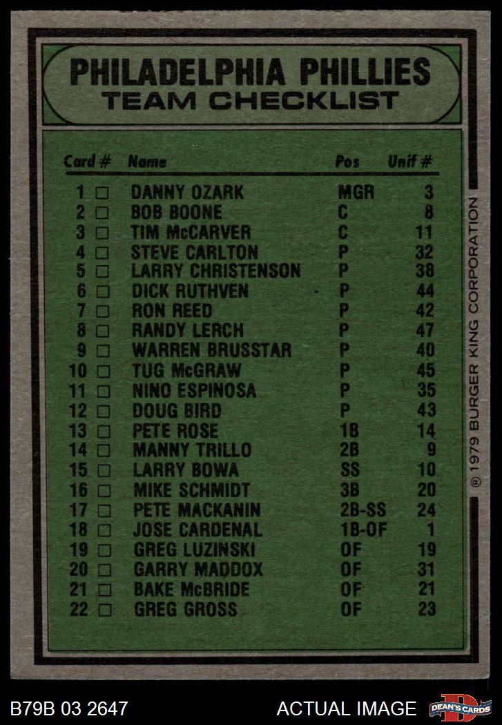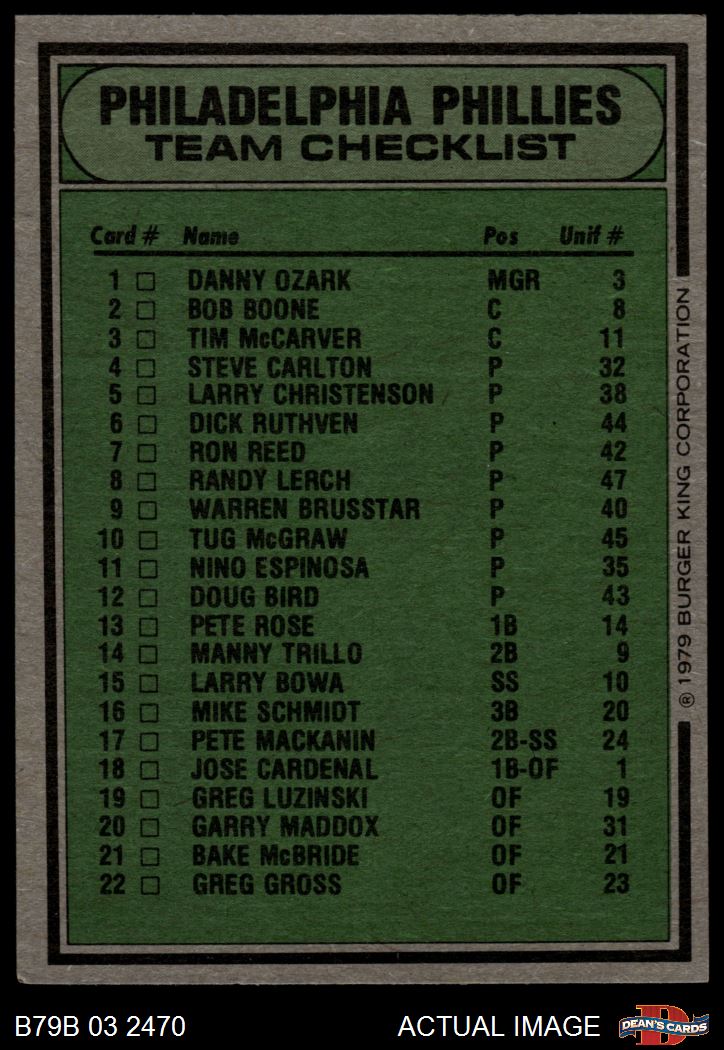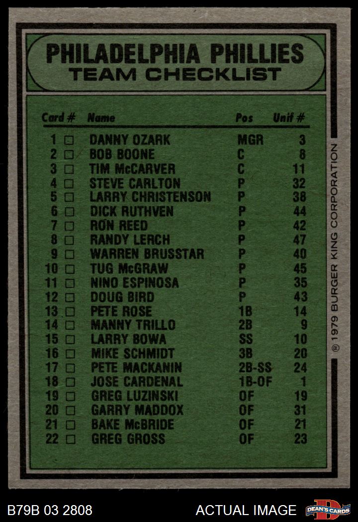 1979 Burger King Phillies Checklist 4.5 - VG/EX+